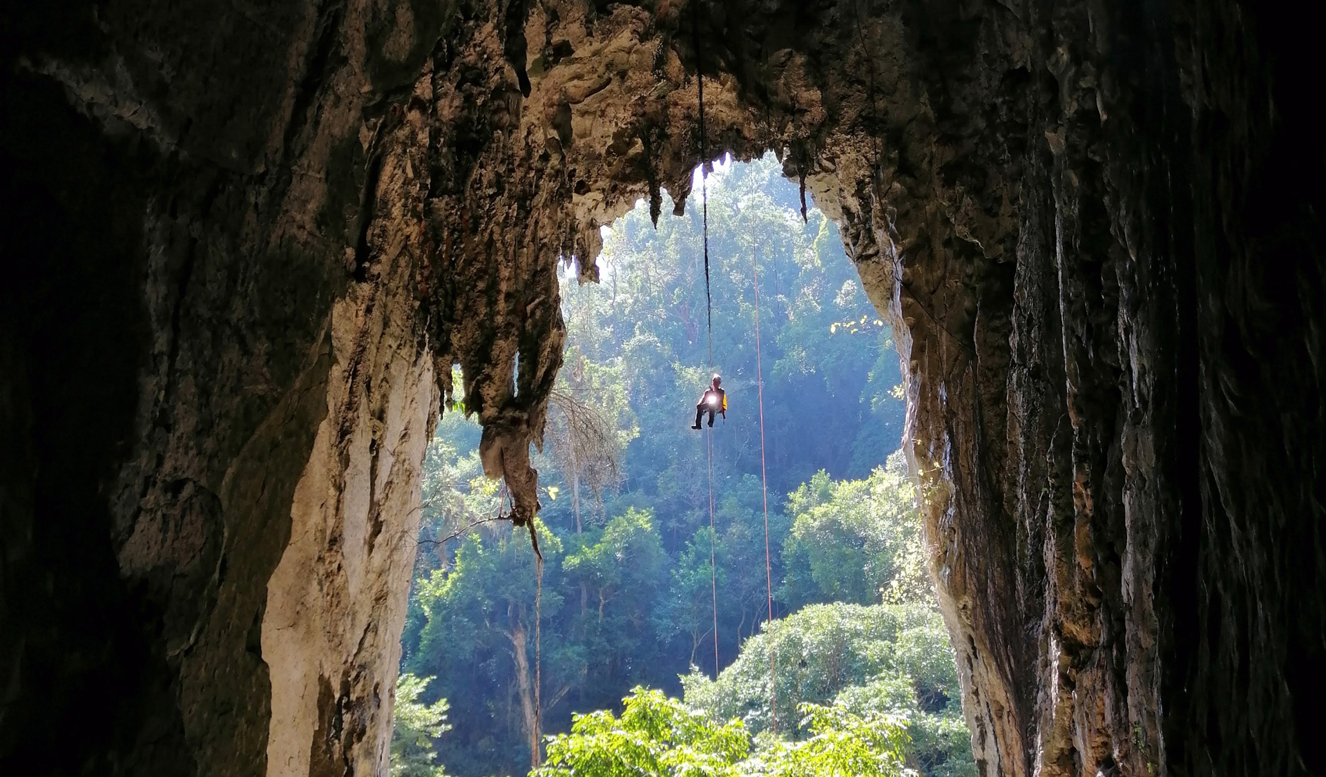 Al día siguiente, la aventura continua río abajo con un rappel de 55 metros y una impresionante vista desde el interior de la Gruta de la Pila 6.